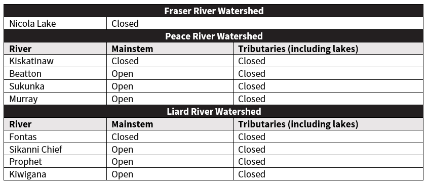 Given local variability, it is possible some streams in the areas under suspension will have recovered sufficiently to allow some water withdrawal. The BCER will review new applications for diversion or use, or requests to use existing approvals, on a site-specific basis.